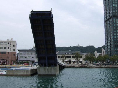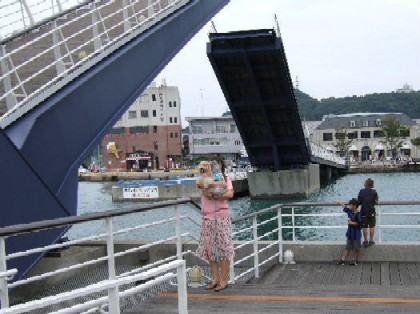 食事が終わって歩いていると 跳ね橋が上がっていくところでした
