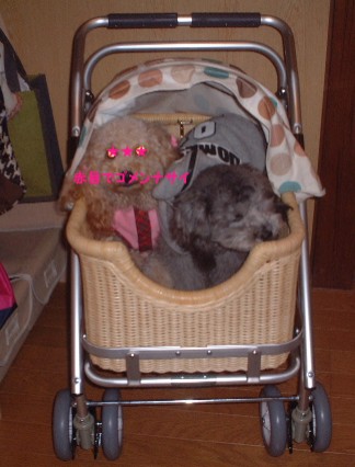 ティオちゃんは ママに抱かれて お人形のように見えました ティミちゃんもお揃いのピンクのつなぎで 美人さんです