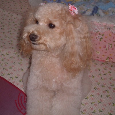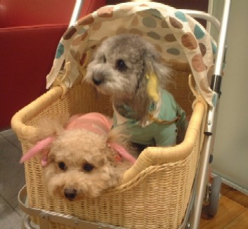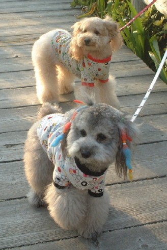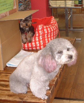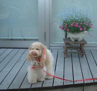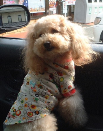 母の日が近いので 母の日コーナーがあり カーネーションで作った(造花ですが)可愛いプードルが沢山並んでいました 写真を撮ってメッセージをつけられるサービスがあるということなのでご自宅用ですが勿論ワンズでお願いしました 出来栄えはチョットいまいち…(・・;)