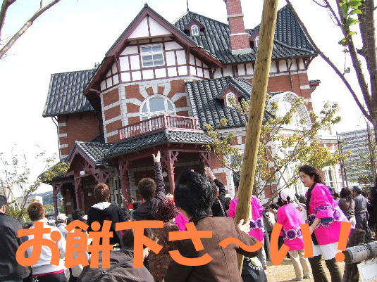 門司レトロに着くと 丁度”餅撒き”が始まるところでした とりあえず後の方で お餅下さ〜い(^o^)/~~~~~オーイ
