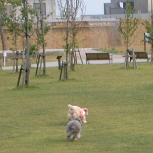 今日はお散歩コースを少し変えてみました とたんにマロンの尻尾が下がり抱け抱けコール 公園ではノ〜リードで走り回っているのに