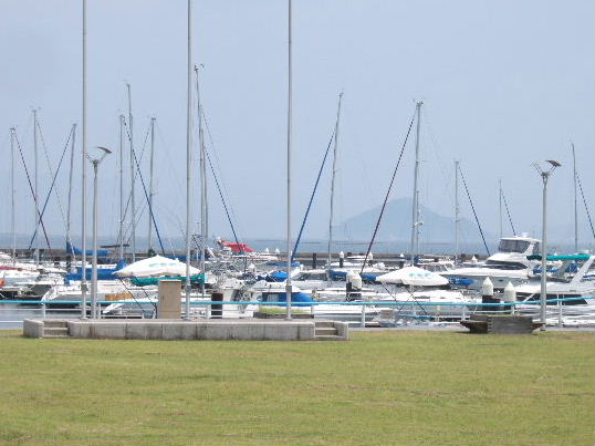 テラス席の正面はヨットハーバーで眺めも最高です でも……暑い(;´д`)ゞあちぃ〜
