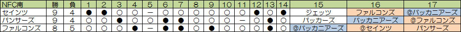 NFCは49ersとシーホークスが地区優勝を争って、直接対決です。