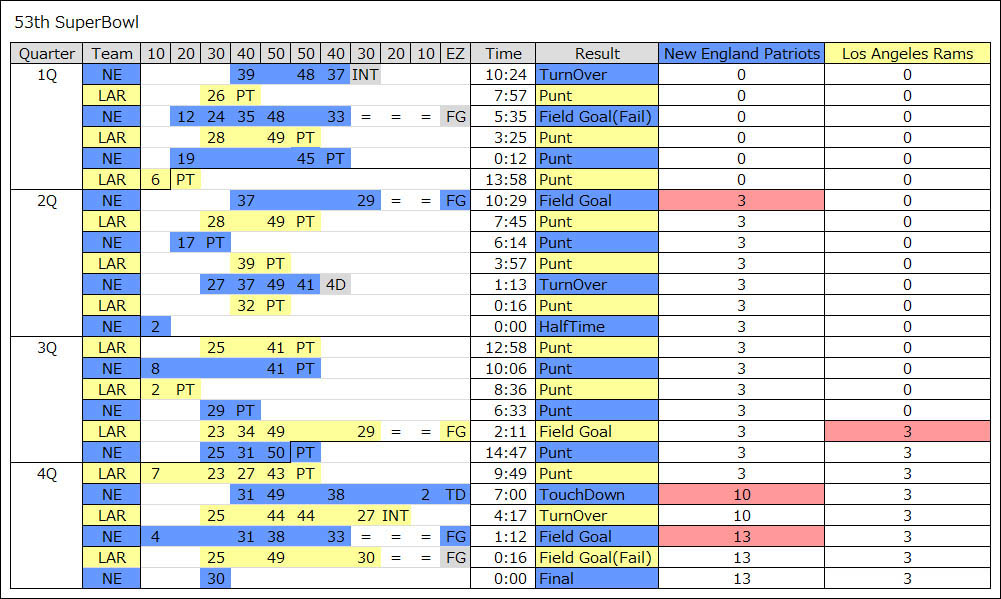 お互いファーストドライブでタッチダウンを上げて盛り上がるも、そこから膠着。