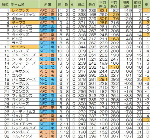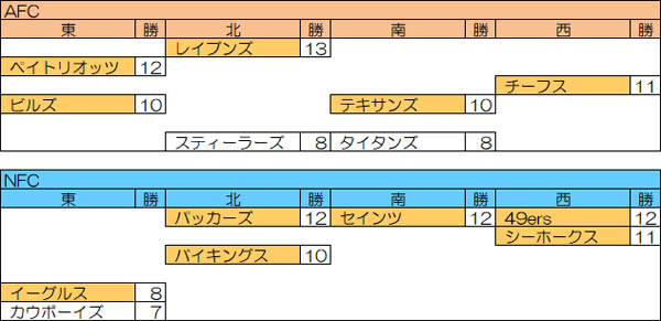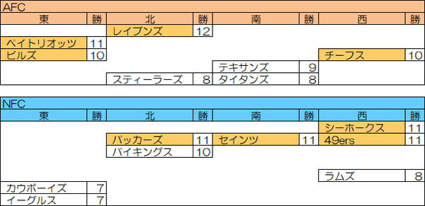 AFCはレイブンズが第1シードを獲得し、シードの4チームも確定。
