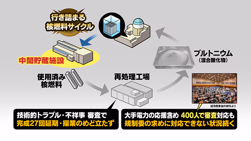そもそもは、再処理して再利用する予定でしたが、30年経っても再処理工場が稼働できない状況が続いています。