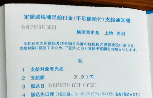 横須賀市から給付金の通知がきて、ようやく恩恵を得ることが出来ます。