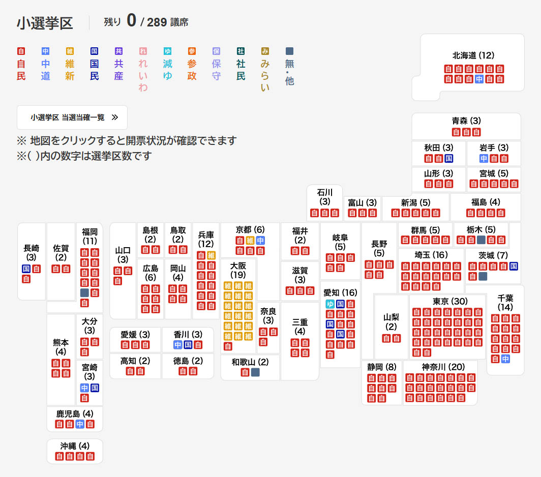 比例代表の得票率が36%の自民党が、小選挙区で86%の議席獲得率となっており、小選挙区での勝利が自民の勝利に繋がっています。