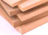 「MDF」は木材の端材や間伐材を利用し木材の繊維を細かく砕いて接着剤と混ぜ、高温・高圧で固めたもの。  正式名称は「Medium Density Fiberboard」で、日本語では「中密度繊維板」と呼ばれている。    分離された繊維で構成されているため合板やパーティクルボードよりも密度が高い。