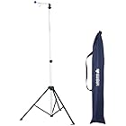 地面に突き刺して自立させる一本足タイプは場所もとらず触れても倒れないのがメリットです。  ただこの方式は突きたてる地面を選ぶことと一旦設置すると簡単に移動出来ないこと。