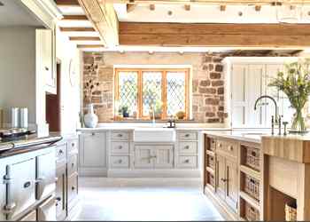 昔の日本家屋の台所は、カマドと水の桶、まな板がある程度でしたが、近年では水を受け水を流すための「槽(シンク)」、給水設備、排水設備からなる「流し台」、 コンロなどの「加熱調理器」、換気扇などの「換気設備」、ワークトップなどの「作業台」、 キャビネットなどの「収納庫」といった付帯設備が一体化されている「システムキッチン」が一般的となっています。