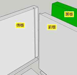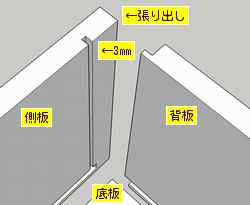 側板の張り出し寸法は5mmでも十分だが、突き出してストッパー代わりにしたりと使い方は現場合わせ。