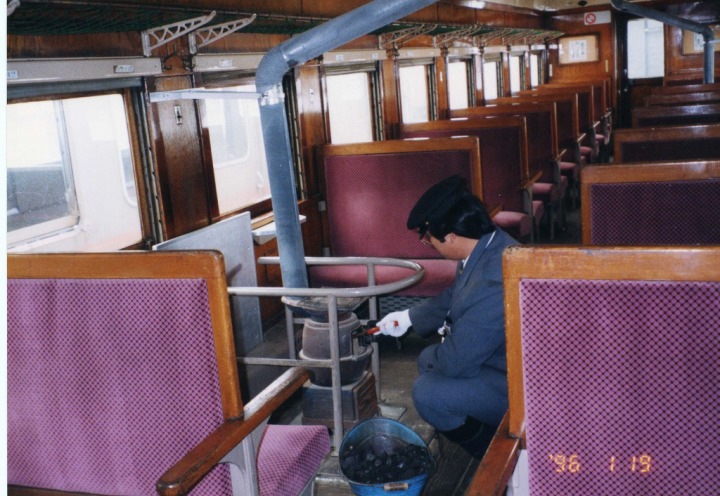 電車内にストーブ有ると聞いてはいたが、本当に有るとは。
