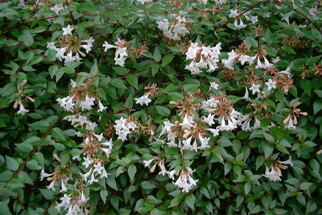 アセビ、ベニバナトチノキ、マロニエ、アベリア(白、ピンク)、ミツバツツジ、