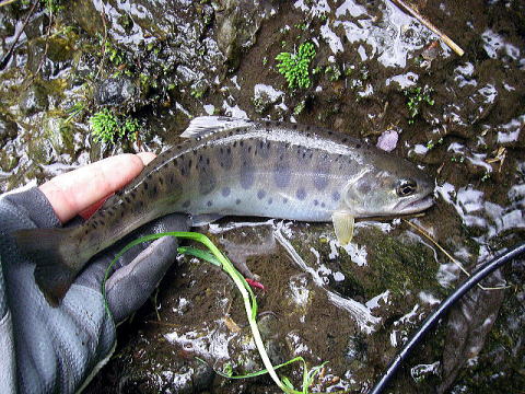 サイズは7.5寸だけど、本流での初ヤマメ・しかも天然ちゃんだもの。