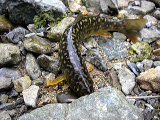 そして、小沢を登っていくと、こんな所にも?と言うくらいゴギがいました。