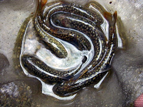 写真撮影しようとタモからだすと・・・すばやく水中へ(笑)?(驚)?