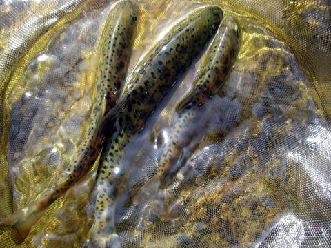 ↑私の3匹(いずれも6寸のおちびちゃん・でも嬉しい!!) ↑ 師匠の1匹を加えて4匹で(笑)