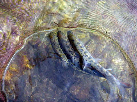 すでに腰の鮎舟は水の中・・・釣れたんだ!!