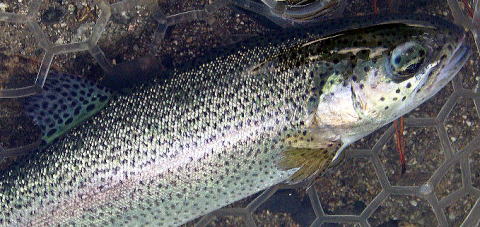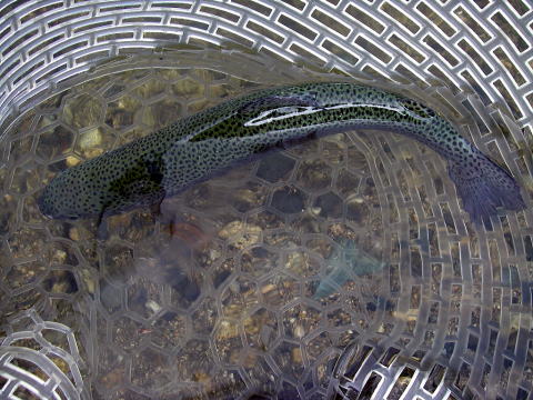 さっきから20分も経たないうちに3匹目がヒット、1匹目と同サイズのまたもやレインボウ