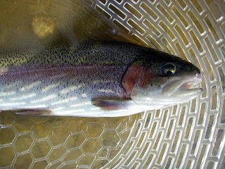 そして放流後、あちこちでバシャバシャと釣れています・・・が、我々の前にレインボーは姿を見せてくれません。