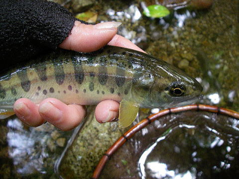 少しだけ移動した極小ポイントでようやくochoが今日初のヤマメをヒット。