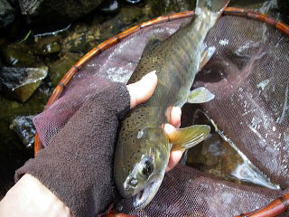 そして、鱗だけが残った痛恨のバラシが一回(ヤマメ?)、特大の「鯉」のバラシが一回。