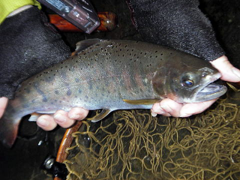 竿:ダイワ深山45MJ ライン:0.4号 おもり:1号 餌:ブドウ虫