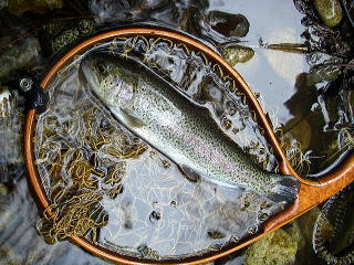 入ってすぐのポイントで、師匠が良型のニジマス(ちょっと複雑)