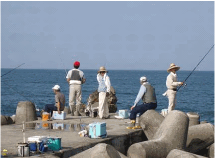 年寄りばかりですがやってこられ、此処にカワちゃんが入ると 「お達者倶楽部」の様な世界が突堤の先端で開かれるように
