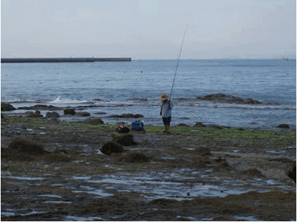 自宅から近いとはいえ3:30に自宅を出発、お魚さんの食事を購入して お吉ヶ浜の北の端:何時ものポイントに5:00に到着。