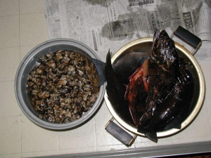 | ナガハエでつれていたのは、 57cmの茶色い尾長だった。 あれ、どうやったら止めれるんかね??? と二人頭を悩ませた。 (教訓)諦めるなら足元でパラパラかな |
