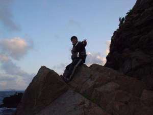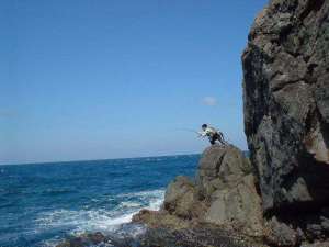 | そしてまた僕に!! 一気に勝負にでたら30cm超のカサゴが 宙を舞っていた。 その後も何発かあたってきたけど、 結局2人して全く勝負にならず。 まさに後ろ髪を引かれる思いで磯を後にした。 |