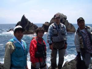 | 船頭:「赤松さん、今日はこっちの船のに荷物をまとめといて下さいや。」 スタッフ:「荷物もっと前の方においといて。」 師匠、父親を含めた5人で中泊にのりこんだ。 今年の正月に初めてここを訪れ、ぼくは渡船軍団と磯取り合戦に圧倒され、 数々の荒磯に魅了され、激流に翻弄され、 スレたグレにもてあそばれ、 そして客想いの船頭衆に惚れ込んでしまった。 初日は最後の最後でパターンを見いだし、良型のグレを仕留めたが、 2回目は釣り座の左右に張り出した根の先をめまぐるしく右に左に流れる 本流、 反流、引かれ潮、サラシ、そしてその地形を知り尽くしたグレ達に もてあそばれた。 そして装備を調え万を侍して迎えた最終日は荒天のため中止という なんともやるせない結果に終わった。 中泊はこれで3回目、この日をどれだけ待ち望んだことか。 はじめて、羨望の地ノコギリを間近に見る。ドキドキ・・・。 エベレストに挑む登山家はこういう気持ちなのだろうか。 ノコギリ: 「オレは別に釣りのために存在しているワケではない。」 師匠:「前にでてきてジャンケンせいと!!」 僕:「えっ!!?マジ?」 頭の中は真っ白だった。 ナガハマ渡船とコケ西を巡ってのバトル。 こっちの代表はタンク、 敵陣には黒ずくめのガマラーがズラリとならぶ。 そしてタンクは見事に勤めを果たした。 ここコケではつい先日も60cmの尾長が釣れている。 「今日は大物ねらいじゃ」師匠は見慣れない竿をだす。 興奮冷めやまぬまま思い思いに釣りを開始した。 さっそく良型のハゲをぶら下げているBさん。 磯際で2.5号竿を一気にのされたオヤジ。 気配は十分にある。 そして時間の経過とともに徐々に上げ潮が差し始めた。 ノコとの水道を流れる図太い本流に、反対側のセトウチ側を流れる流れが突っ込み、 はるか沖でカーブを描いているようだ。その距離約100〜150m、狙いはそこだ。 そして120m程先から強烈な魚信!!一旦フリーで走らせ戦闘開始!! 新調したGチューン1.75号は胴からひん曲がっているがその粘り腰を失ってはいない。 もう一発ギューン!!とヤツは締め込んできた。竿の角度を更に増してぐっとこらえた。 うううん、これはキツイ、もう一回ベールを起こすか・・・。 と、思った瞬間フッと軽くなった。 あっちゃー。 尾長8号がひん曲げられていた。しかし凄いパワーだった。 ロッドを制覇2号HRにチェンジ。あいつをとらなければ帰れない。 そしてついに今日のその時が訪れた。 同じく120m程沖、「トメの誘い」をいれ、 もう一度道糸を送り出した直後だった。 ブルブルブルブルブル!!バチバチバチバチ!!グググングーン!!! なんとも言葉では表現できない動的な衝撃がロッドを通じて伝わってきた。 ぼくの中に眠る野生の本能が目覚めるような感覚だった。 一旦好きなだけ走らせてやる。 50m走ってもまだ止まらない、道糸残りわずか・・・。頼む、止まってくれ!! 道糸200m巻いていて助かった。 |