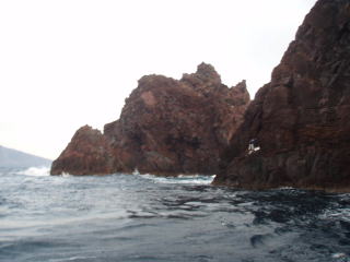 | まず、4人組が名前を呼ばれ畳根へ向かった。 M先生が実はもっとも行ってみたかった場所。 実は僕もだ。残念。 次に、岡の高島の中の島向かい、新場へ。 最近人を渡すようになったらしいけど、 かなりの絶壁系。睡眠不足じゃ行けない・・・。 |