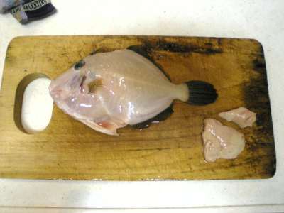 後日談:肝を刺身にしてポン酢で食べたところ、激ウマ!) |