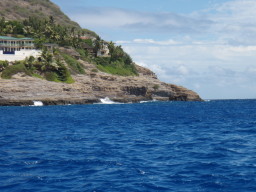 | ワイキキとノースショアで竿を出してみたが、何も釣れない。 少年たちが、アオヤガラを釣って遊んでいる。魚影は乏しい。 スキューバーダイビングをしてみればよくわかる。 浅瀬には普通の熱帯魚とブダイ、沖の沈潜周辺にはマンタとバラクーダ。 岸壁にコバルトブルーのスズメダイが戯れる四国、西海の十分の一に及ばない魚影。 白い海底の中、まばらに熱帯魚が集まり暮らしている姿は、砂漠のオアシスのよう。 |