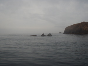 | 恒例の神子元島夜釣り。 狙いは3つ、一つはイサキの3桁釣り、もう一つは夕マズメの尾長、残り一つは、「手に負えない大物」だ。 個人的には、真夏より初夏が良いと思う。真夏になると、イサキが産卵してしまうし、なによりも暑い、薄着をすれば蚊の餌食。 今日は下り潮が本場に押し付けるように流れている。江の口のワンドが最高のポイントになりそうだ。 昼間の客は、40cm弱までのメジナ数匹、イサキは結構釣っているよう。明るいうちはそれぞれ思いの場所にはいった。 夕マズメ、江の口でサンノジが連発、そうでないのも混ざっていたかもしれないが、バラシしてしまった。 本場では、M先生が大型のカンパチに道糸を全部引っ張り出されたよう。リベンジに燃えていた。 |