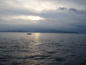 | そして下げ潮が入ってきた。またワンドの中に潮が差込み始めた。朝のように奥の方は底まで丸見えであり食ってこないが、シモリの付近に投げればポツポツと釣れ続いた。 その後、再度ダルマさんに大きなアタリ。正面の釣り座で、深めのタナを流していた模様。バレてしまった・・・。 他の客も口太がポツポツ、尾長は見当たらず。今日は自分らが一番釣っていたようだった。ちなみに、翌日から中泊のコケの瀬戸内とコケの水道のところで口太爆釣モードに突入するが、今日はそういった気配はなかった。 夜の宴は、ダルマさんが持ってきた北海道のサケの燻製、ホタテ、ジンギスカン、ハマちゃんのカニやら、釣ったヒラスズキにカワハギに養殖のハマチ、好物のナマコに春菊、わざわざ東京から持って帰った自家製柚子ポン酢、全国の山海の珍味で散々、これがなくては年末という気がしない。 <関連ブログ> |