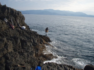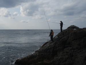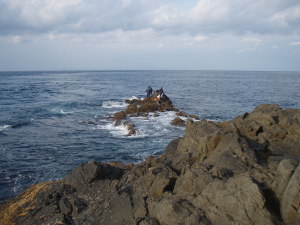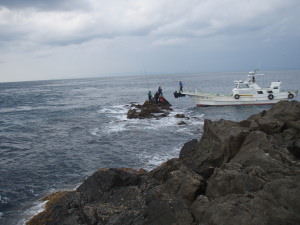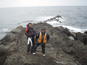 | 比較的空いている1月1日、小潮の上げ潮、確実な尾長場として沖釣1番、2番を狙った。ここで初日の出を見るのは2回目だ。船の中で船長と話をしていると沖釣に渡る客が8人いるそうで、一瞬やめようかとも思ったが、よく聞けば、一組は板をもってチョボに向かう、もう一組は裏側に入る、とのことでセーフ。 非常に良い感じで、上げ潮の本流が入っている。沖のシモリを抜群に狙える感じだ。連日入っている客から、1番、2番は本当に食わんよ!といわれたが、ここでやるしかない。さっそく、本流の中でアタリ。40cm弱の口太。ここの釣場は、食った後、強引に引っ張ってこなければ根に巻かれてしまう、ダルマさん、強引に釣ったのは、またしてもイサギ。またしても「夜釣りやってんじゃねえんだよ!」の名言が出た。 その後もシモリの周辺を執拗に攻めればポツポツとアタリがでる。エサだけとられてしまうことが多い。 昼になって、潮どまり。際が狙えるようになってきた。短い尾長の時合いだ。早々にハマちゃんにアタリ、竿が海に突っ込んだが跳ね返った。続けてアタリ、浮いてきたのはヘダイ・・・。そのうち、潮が逆に流れ始めてアタリが途絶えた。天気と潮、極少数の勝負磯でのみ、かつ、お魚のご機嫌が良い、その時の一瞬だけ時合いがあり、100回掛けて1匹取れればよい、宝くじをあてるような釣りだ。金がかかって仕方ない。 |