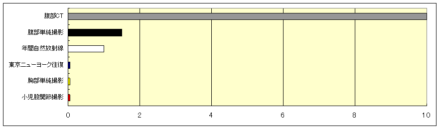 いろいろ調べてみると被爆線量というのはわかりにくい。たとえば年間自然放射線量といっても、地域によって異なるし測定者によっても異なっている。整形外科における診断用X線被爆量も同じで、データはまちまちである。それでもばらばらなデータを比較するとそれほど大きな差はないので、ここでは水野記念病院の放射線技師長が調べてくれたデータをもとに話をする。
