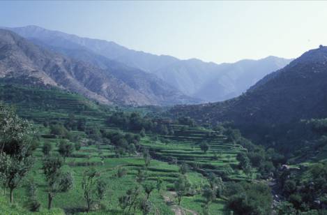 さて、雨が上がったので、男たちについて散歩に行く。村の回廊のような道を通り、そして山を上る。日本の山の森林限界を超えた、上のガレ場のような道である。私は、靴がいささか心許ないのであるが、バトゥーは、私のことをオバハンだと思っているので、「歩けるかい?」などと聞く。クソォとは思うけど、強そうな口答えをして、転んだ日にゃあ恥ずかしい。「だいじょうぶだと思うよぉ〜」と笑っておく。道を上ると、ここ、そこ、向こう・・・に村が見える。村は山のふもとに、そのひとかたまりが、やはり一つの砦のように見える。ナシェルが、「村の人を近くから撮ってはいけないよ」と言う。女を撮ってはいけないということだ。遠くならいい?と聞くと、それはいいそうだ・・・ヘスロウは、自分を撮ってくれ・・と格好をつけ、そして、草を背負ったお年寄りが通ると、「なぜ撮らないんだ」と言う。こういう状況では、男とはいえ、やはり遠慮してしまう。