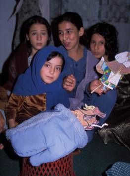 男の子たちは、ドラマを演じて見せてくれた。写真を撮りにこい・・・と呼ばれ見に行く。ヌルラマンが指導したらしいが、医者が誤診をして、男の子を死なせてしまう。死んだ男の子は運び出され葬られる。患者は取り違えられていたらしく、男の子の親は、子どもが死んだことを知らなかった。その後、間違えがわかり、子どもの遺体が再び墓から運び込まれ、みんな死体に取りすがって泣き、父親は医者を、どうしてうちの子を殺したんだ、と殴る。医者は謝る・・・というような、子ども劇とは思えないような筋の劇だが、やはりアフガンは、本当に死が身近なのだろう。死が平気で出てくる物語がすごく多いし、子どもたちも死体に取りすがって泣く姿なんかを見ているに違いない・・・・結構真に迫った演技であった。