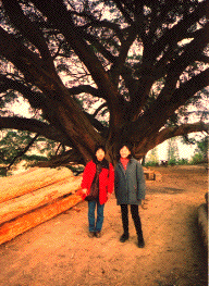 車は苗江沿いに走る。川の表面はまるで鏡のように静かで、水面に映る山影が美しい。このような川面に映る山影の美しさで、桂林が有名なのだろう。石灰岩の山だけだったら、列車の窓からもうんざりするほど見えた。道はくねくねと長いが、ラオスの田舎道より舗装はいい。それでも、雨季などの移動は大変かもしれない。苗江のほとりに、大きな木があった。何百年もたっている木で、トン族の神がやどる木だそうである。榕樹(ジョンスー、英語でペンヤン?というそうだ)という木。大きな大きな木であった。