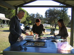 キャンプ場裏にあるマングローブ。干潮時に探検! | こんなサイケなカニの大群を発見 | ゴールドコーストに戻った時に一緒に住ませてもらったオリーブ&ジェフと公園でバーベキュー。オーストラリアにはどの公園にもこういった無料のバーベキュー施設がある |
