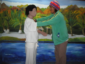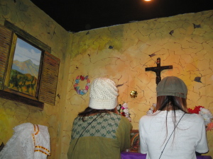 意味不明 | 作り物の教会でお祈り。 | 同じ宿に泊まるジュン君。 彼は気功師である。 |