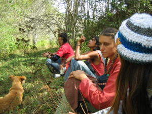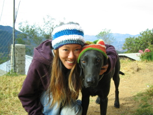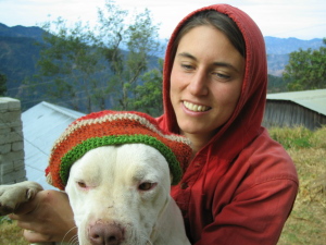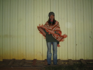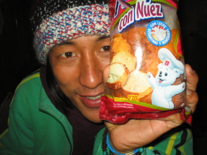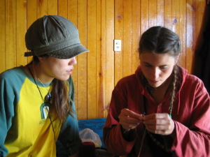 帽子の編み方をミッシェルに伝授するトモ。しかもスペイン語でよくがんばった! 思い返すと、トモは旅の中でたくさんの人に編み物を教えてきたね。 |