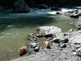 少しずつ、川に近づくプーポコ |