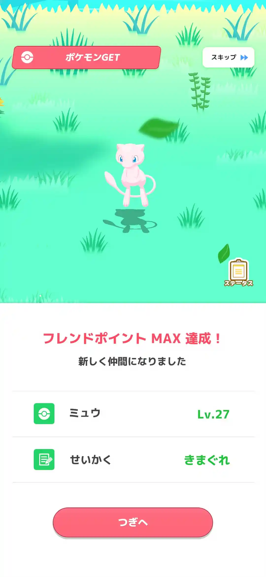 ミュウも無事に仲間になってくれました。使いたいけどスキルガチャ仕様が本当にきつくてもうね…。緩和して欲しいです。
