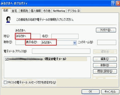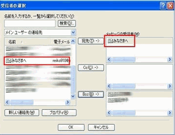 アドレス帳に「表示名」を「みなさまへ」、「アドレス」を「ご自分のアドレス」としたものを1つ作る |